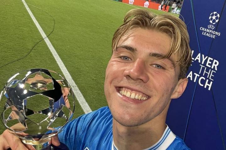 霍伊伦德抱着奖杯可是喜悦满脸的状态,媒体发文称:很久没看到过他有这样的表情了!